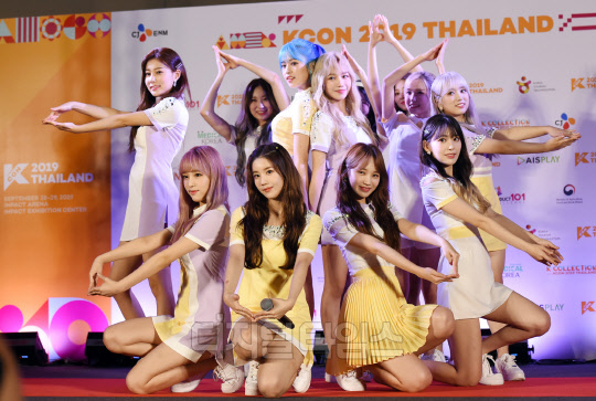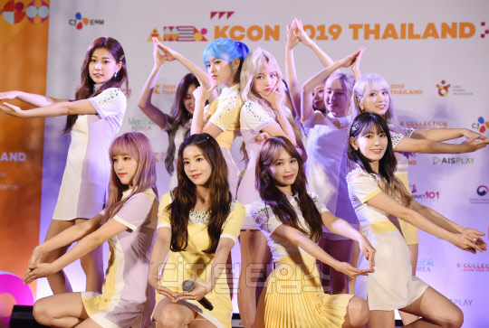 그룹 아이즈원 (IZ*ONE)이 29일 태국 방콕 IMPACT ARENA(임팩트 아레나)에서 열린 'KCON 2019 THAILAND(케이콘)' 레드카펫 행사에서 포즈를 취하고 있다.