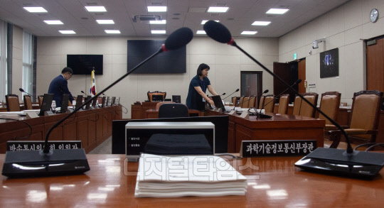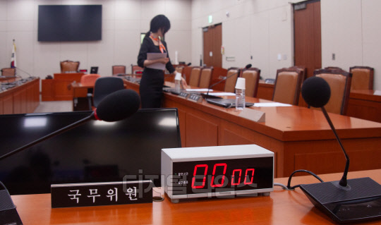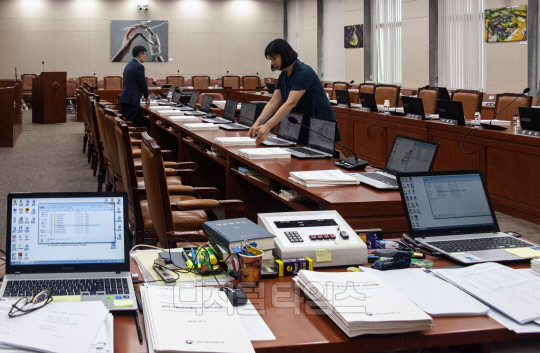 20대 국회 마지막 국정감사를 하루 앞둔 1일 서울 여의도 국회 상임위 회의실에서 관계자들이 자료 준비를 하고 있다.