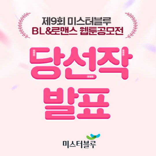 미스터블루 관계자는 "제 9회 미스터블루 BL&로맨스 공모전에 참여해주신 모든 신진작가님들께 감사의 인사를 전한다"며 "이번 공모전은 국내외 연재를 염두에 두고 미스터블루와 함께 성장해 나갈 수 있는 잠재력 있는 작품을 찾는 것에 중점을 두고 심사했다"고 밝혔다.