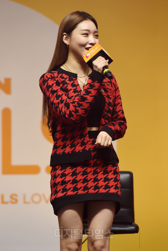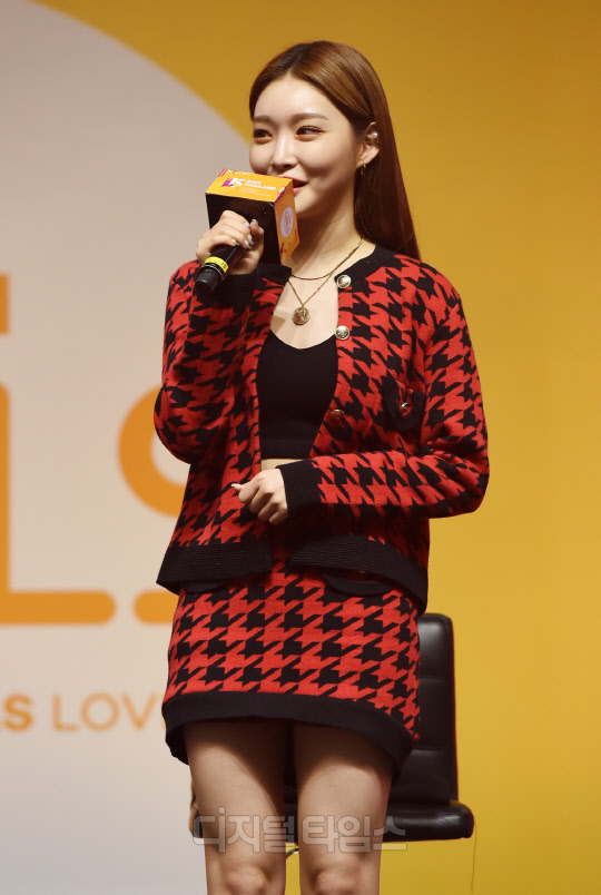 가수 청하가 29일 태국 방콕 IMPACT ARENA(임팩트 아레나)에서 열린 'KCON 2019 THAILAND(케이콘)' KCON GIRLS STAGE 무대에서 펼쳐진 Girls Live Talk 행사에서 진행을 하고 있다.