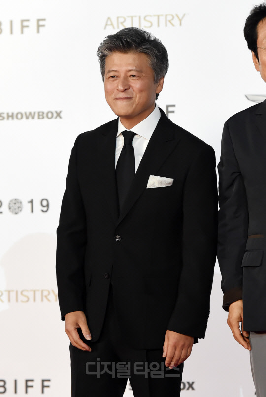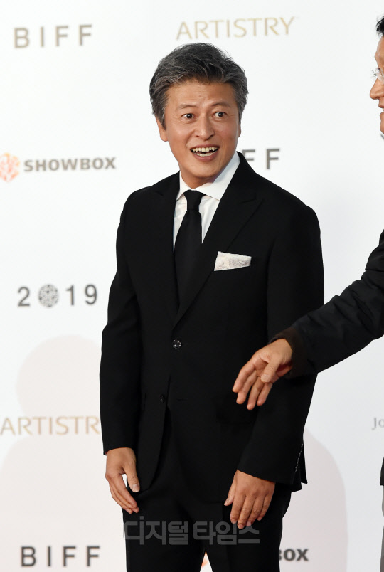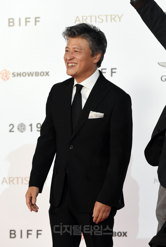 배우 권해효가 3일 오후 부산광역시 해운대구 영화의 전당에서 열린 '제24회 부산국제영화제' 레드카펫 행사에 참석, 포토월에서 포즈를 취하고 있다.