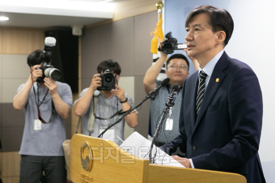 취임 한 달을 맞이한 조 장관은 이날 검사장 전용차량 폐지 및 검사 파견 최소화 등의 내용을 담은 추진계획을 발표했다.