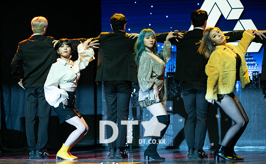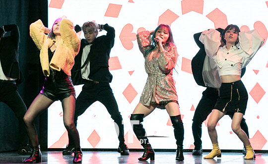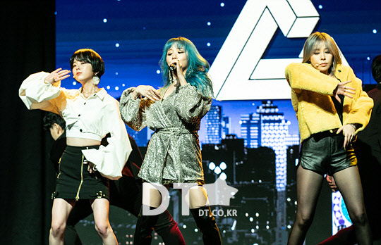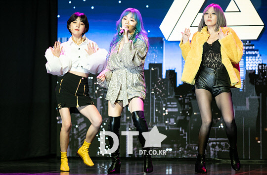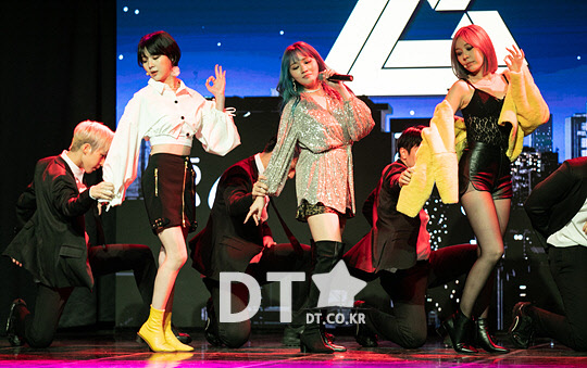 그룹 레이디스코드(주니, 소정, 애슐리)가 10일 서울 마포구 하나투어 브이홀에서 열린 미니 앨범 'CODE#3 SET ME FREE' 발매 쇼케이스에서 신곡 무대를 선보이고 있다.