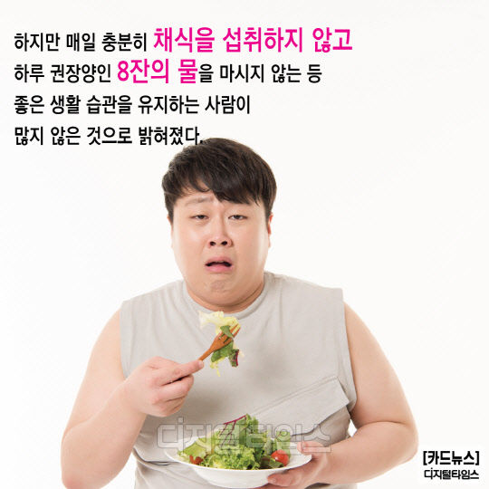 하지만 매일 충분히 채식을 섭취하지 않고 하루 권장양인 8잔의 물을 마시지 않는 등 좋은 생활 습관을 유지하는 사람이 많지 않은 것으로 밝혀졌다.