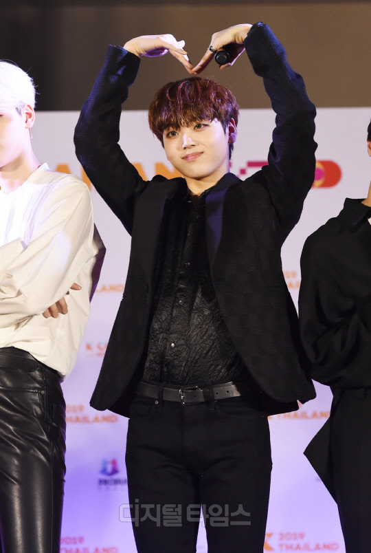 그룹 X1(엑스원)의 송형준이 29일 태국 방콕 IMPACT ARENA(임팩트 아레나)에서 열린 'KCON 2019 THAILAND(케이콘)' 레드카펫 행사에서 포즈를 취하고 있다.
