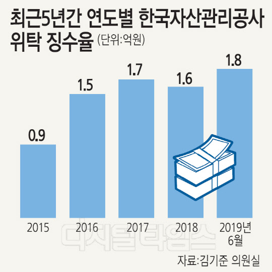 이 기간 캠코는 2015년 10억원, 2016년 15억원, 2017년 20억원, 2018년 19억원, 올해 1∼6월 8억원 등 총 72억원의 수수료를 지급받았다.