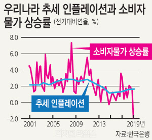 김병국 한은 조사국 차장은 "우리나라의 경우 글로벌 요인이 물가상승률을 낮추는 요인으로 작용해 왔고 다른 나라에 비해 상대적으로 컸다"며 "최근 우리나라의 물가상승률은 일시적 요인의 영향으로 추세를 크게 하회하고 있기 때문에 현재의 이례적으로 낮은 물가상승률을 지속될 것으로 보기 어렵다"고 밝혔다.