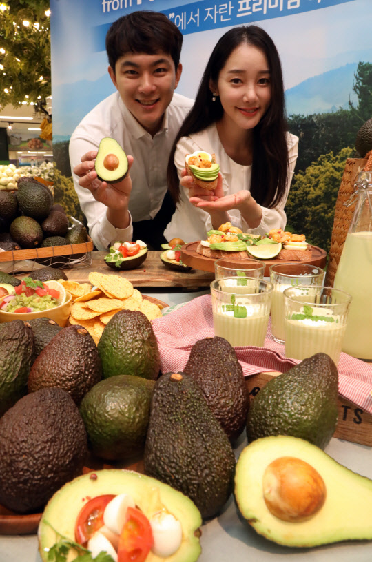 14일 서울 이마트 용산점에서 모델들이 제철을 맞은 뉴질랜드산 아보카도를 소개하고 있다.