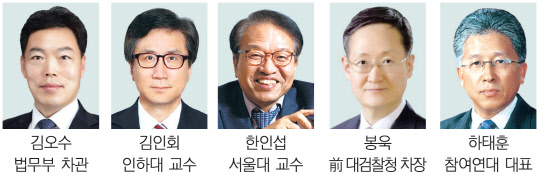 김 차관이나 봉 전 차장 외에 학계에서는 한인섭 서울대 법학전문대학원 교수와 김인회 인하대학교 법학전문대학원 교수, 참여연대 공동대표인 하태훈 고려대 법학전문대학원 교수 등이 거론되고 있다. 문재인 정부가 학계 출신을 선호한다는 점에 비춰 또 한 번 교수 출신 법무부 장관이 탄생할 것이라는 예측에 힘이 실리고 있다.