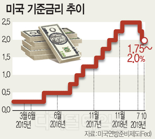 금융시장에서는 글로벌 경기둔화가 심화함에 따라 연준이 이달에도 한 차례 보험성 금리인하를 단행할 수 있다는 전망이 확산하고 있다.