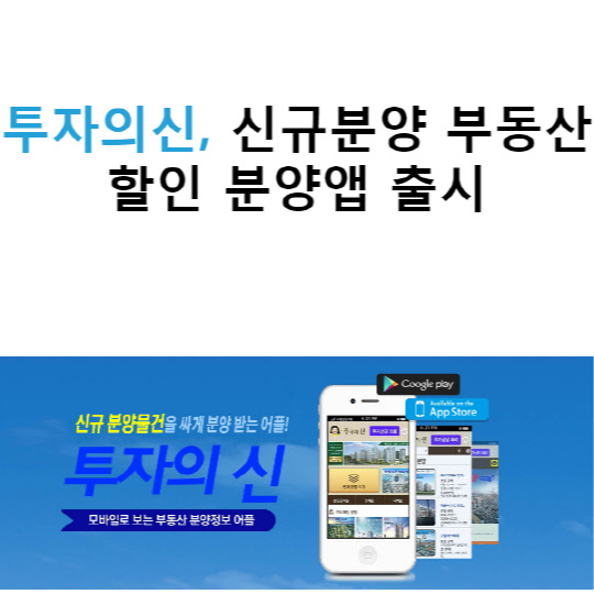 투자의 신 어플은 구글이나 ios에서 다운을 받으면 누구나 사용이 가능하고, 카테고리는 '신규분양할인', '일반분양', '투자분석', '허준열칼럼' 으로 이루어져 있다. 만약, 어플에 할인을 받으려고 하는 분양현장이 없다면 투자의신 본사로 문의해 도움을 받으면 된다.