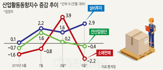 광공업 생산은 증가했지만 도소매와 금융·보험업을 중심으로 서비스업 생산이 줄어든 것이 영향을 미쳤다. 7∼8월 증가하던 전산업 생산이 석 달 만에 다시 감소세로 돌아섰다.