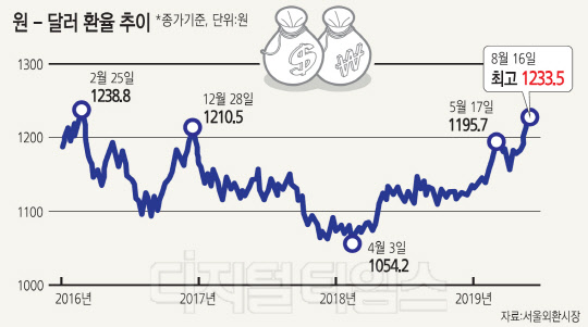김효진 KB증권 애널리스트는 "2020년 달러는 강세국면을 이어갈 것으로 보이나 하반기로 가면서 약세 흐름이 예상된다"면서 "정치적 리스크, 경기 둔화 등에 따라 환율이 오버슈팅도 언더슈팅도 할 수 있겠지만, 기저에는 설비투자가 늘어나는지 주춤하는지가 환율을 결정할 것"이라과 내다봤다.