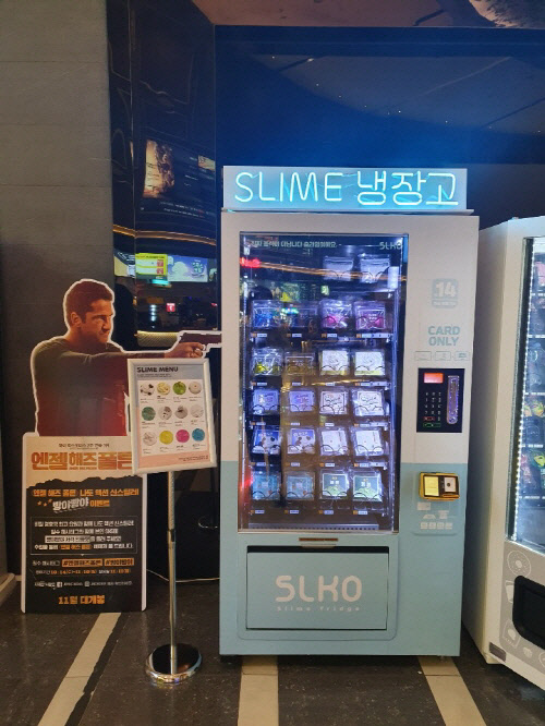 새로운 슬라임 콘텐츠를 꾸준히 선보이며 슬라임 시장의 선두주자로서 주목 받아온 슬코는 이번에도 국내 최초로 냉장이 가능한 슬라임 무인 자판기에 슬라임 팩 형태의 '슬코픽' 제품들을 판매하고 있어 극장을 찾는 고객들이 영화 대기 시간에도 손쉽게 제품을 구매하여 슬라임 플레잉을 즐길 수 있는 재미있는 경험을 선사하고 있다.