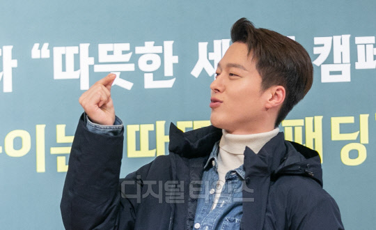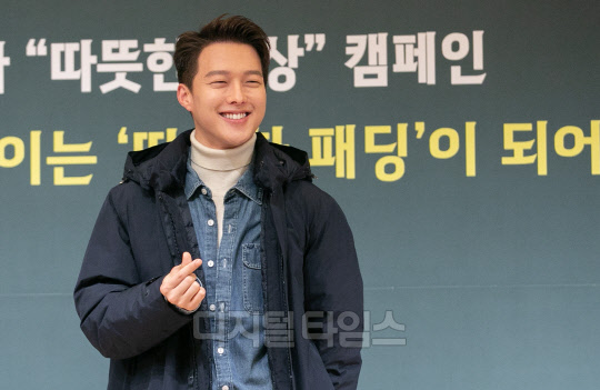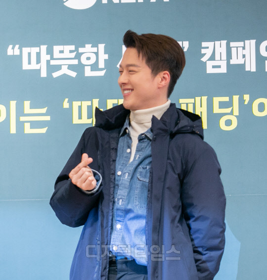 배우 장기용이 12일 서울 중구 웨스틴 조선호텔에서 열린 네파 '따뜻한 세상 캠페인 따뜻한 패딩 전달식'에서 포즈를 취하고 있다.