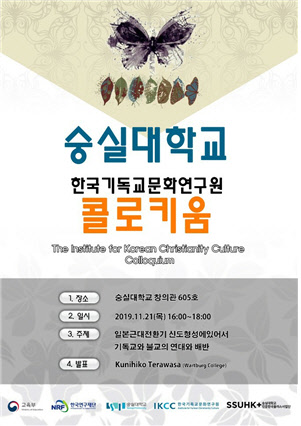 숭실대학교(총장 황준성)는 한국기독교문화연구원(원장 황민호)이 11월 21일(목) 오후 4시부터 숭실대 창의관 6층 회의실에서 미국 와트버그 칼리지(Wartburg College) 종교학과 테라사와 쿠니히코(Kunihiko Terasawa) 교수를 초청해 <일본근대전환기 신도형성에 있어서 기독교와 불교의 연대와 배반>이라는 주제로 정기 콜로키움을 개최한다고 밝혔다.