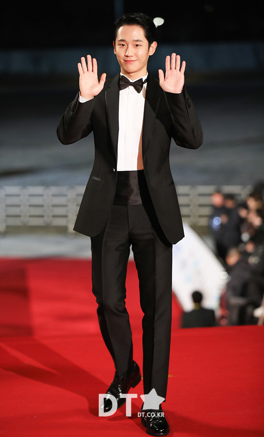 배우 정해인이 21일 인천 파라다이스시티 호텔에서 열린 40회 청룡영화제 시상식 레드카펫 행사에 참석하고 있다.