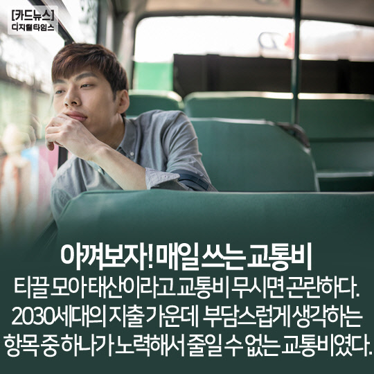 2030세대의 지출 가운데 부담스럽게 생각하는 항목 중 하나가 노력해서 줄일 수 없는 교통비였다.