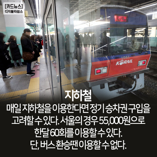 매일 지하철을 이용한다면 정기 승차권 구입을 고려할 수 있다.
