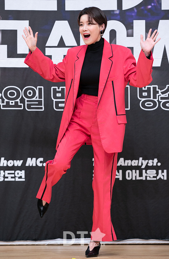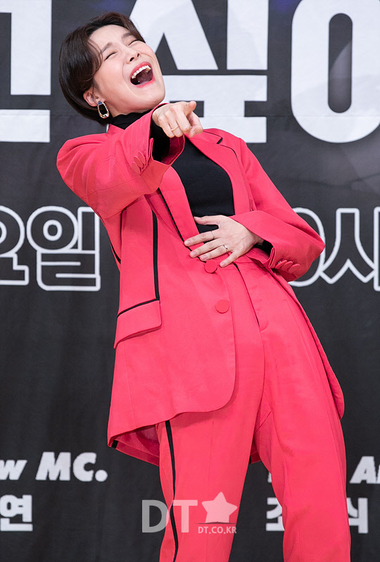 방송인 장도연이 2일 서울 목동 SBS에서 열린 예능프로그램 '이동욱은 토크가 하고 싶어서' 제작발표회에서 포즈를 취하고 있다.