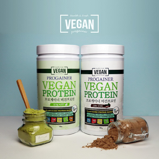 프로게이너 비건프로틴(식물성단백질)은 단백질로 분리완두콩단백분말, 아몬드단백분말, 19곡 분말 과 같은 식물성 단백질만을 공급하는 제품으로 기존 단백질 보충제품에서 볼 수 있는 유청단백질, 난단백질, 닭가슴살단백질 같은 동물성 단백질은 함유되지 않은 제품이다.