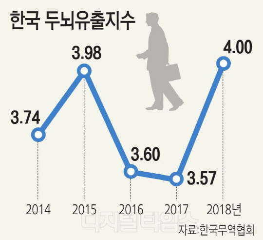 한편 무역협회에 따르면 스위스 국제경영개발대학원(IMD)이 발표한 '두뇌유출 지수'에서 한국은 지난해 4.00점을 받아 63개 조사 대상국 중 43위에 그쳤다. 10점 만점의 이 지수는 점수가 낮을수록 해외로 나간 인재가 국내로 돌아오지 않는다는 것을 의미한다.