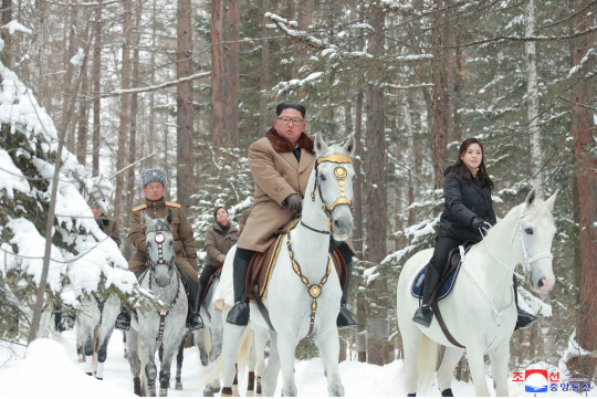 트럼프 보란듯… 백마 타고 백두산 오른 김정은