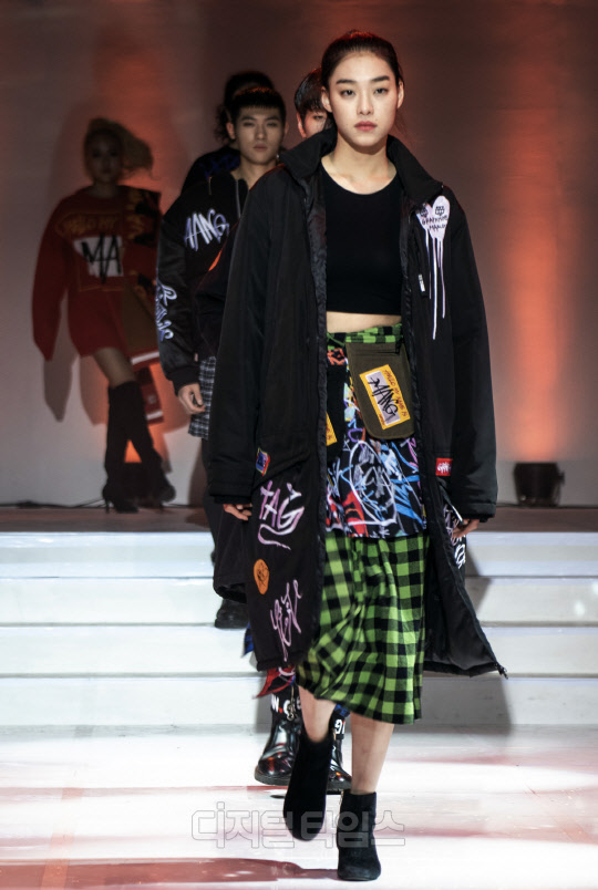 29일 서울 성북구 서경대학교 본관 컨벤션홀에서 진행된 '共 zone - Seven Soul' 패션쇼, 만지 무대에서 모델 김설희가 당당한 워킹을 선보이고 있다.