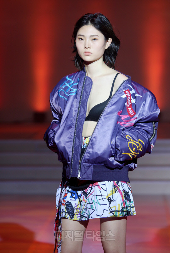 29일 서울 성북구 서경대학교 본관 컨벤션홀에서 진행된 '共 zone - Seven Soul' 패션쇼, 모델 윤수빈이 당당한 워킹을 선보이고 있다.