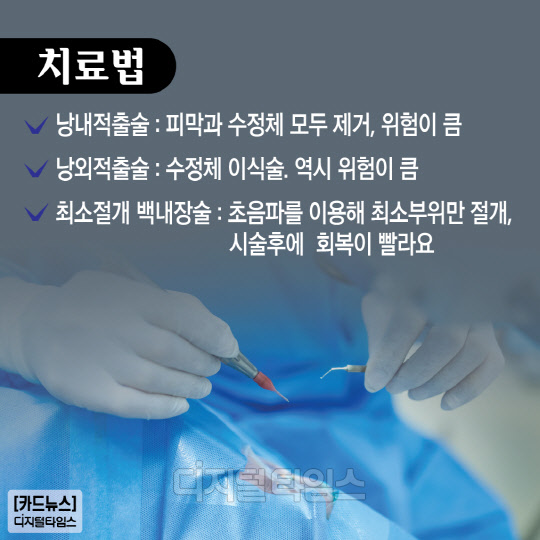 낭외적출술: 수정체 이식술. 역시 위험이 큼