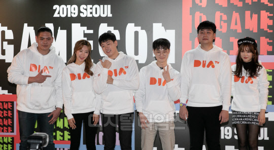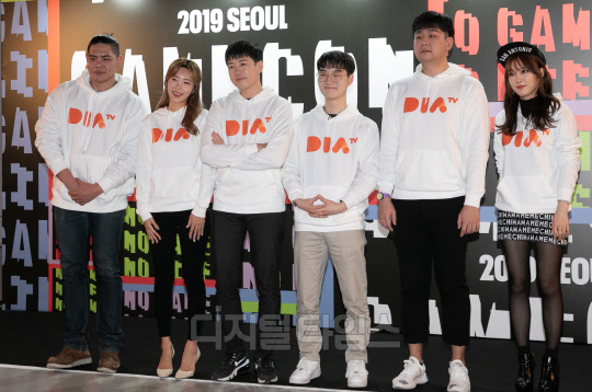 21일 서울 동대문디자인플라자(DDP)에서 열린 게임콘 2019 서울(GAMECON 2019 SEOUL)에서 다이아TV(러너, 꽃빈, 머독, 눈쟁이, 미라클, 햇살살) 크리에이터들이 오버워치 대회 '샌다전'을 마친 뒤 포즈를 취하고 있다.