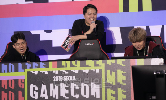 21일 서울 동대문디자인플라자(DDP)에서 열린 게임콘 2019 서울(GAMECON 2019 SEOUL)에서 BJ보겸과 악어의 '콜오브듀티 모바일 좀비 파티 시즌2'가 진행되고 있다.