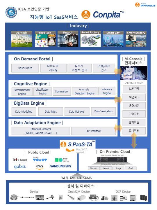 인프라닉스는 클라우드에 탑재되는 빅데이터와 지능형 IoT(사물인터넷) SaaS(서비스형 소프트웨어)서비스인 '컨피타(Conpita·이미지)'를 기반으로 다양한 서비스를 제공하고 있다.