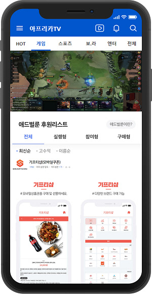 지난 20일, 모바일 핀테크 전문 기업 스마트콘(대표 김종현)이 아프리카TV 애드벌룬에 모바일 상품권을 구매할 수 있는 스마트콘 기프티샵을 입점했다고 밝혔다.
