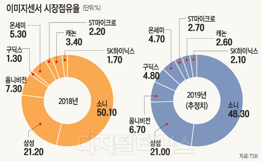 시장조사업체 TSR은 올해 이미지센서 시장 규모가 158억8390만 달러(약 18조5000억원)로 전년(131억1600만 달러)보다 21.1% 늘어날 것으로 분석했다.