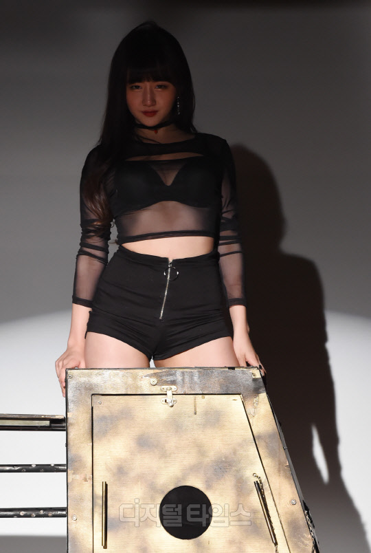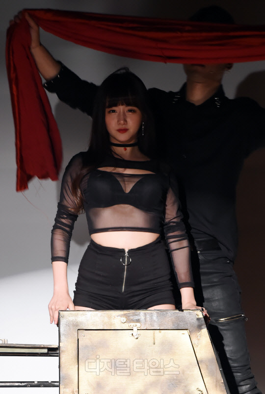 미스맥심 한지나가 서초구 흰물결아트센터에서 글로벌 남성잡지 MAXIM(맥심) 주최로 진행된 '2019 MISS MAXIM SHOWCASE(미스맥심 쇼케이스)'에서 마술쇼를 선보이고 있다.