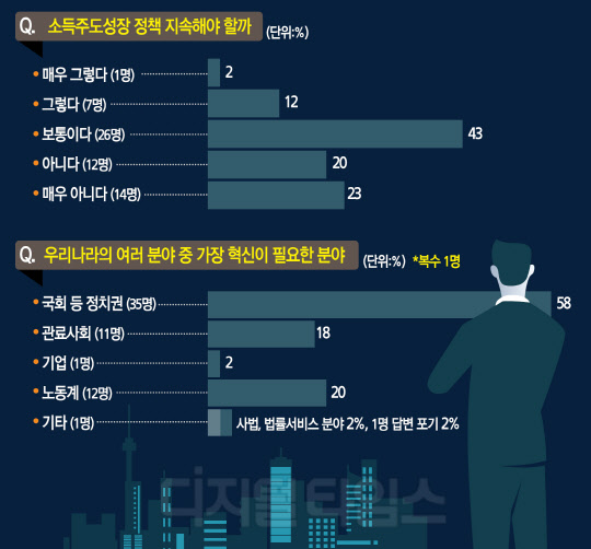 1일 디지털타임스의 경제 전문가 설문조사 결과 이 같이 나타났다. 지난 19일부터 25일까지 실시된 이번 조사에는 경제 분야 대학 교수, 국책·민간 경제연구소, 증권사 애널리스트, 금융권 종사자 등 경제 전문가 60인이 참여했다.