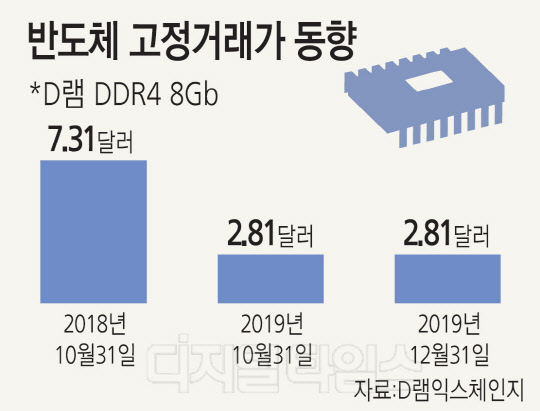 실제로 1일 시장조사업체 D램익스체인지에 따르면 D램(DDR4 8Gb) 가격은 작년 10월 말 2.81달러로 1년 전과 비교해 거의 4분의 1 수준까지 급락했지만, 최근 두 달 연속 보합세를 유지하며 반등을 위한 바닥 다지기에 들어갔다. 이들은 "D램 현물 시장에서는 11월 18일 이후 이미 9.5% 반등했다"며, 안정적인 재고 확보를 위한 구매 수요가 늘면서 PC용에 이어 서버와 그래픽용 D램 가격도 빠르게 반등할 것으로 분석했다.