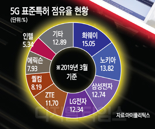 특히 중국의 대표적인 IT기업인 화웨이가 미국의 강력한 견제에도 불구하고, 15%의 특허 점유율을 보이면서 1위를 차지했다. 그 뒤를 핀란드 노키아(13.8%), 삼성전자(12.7%), LG전자(12.3%), 중국 ZTE(11.7%) 등이 이었다. 스마트폰 칩 시장에서 압도적 우위를 확보하고 있는 미국의 퀄컴과 PC 칩 시장의 강자인 미국 인텔은 각각 8.2%, 5.3%를 차지해 각각 6위, 8위를 기록했다.