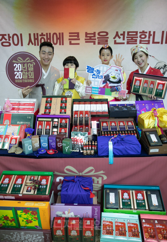 KGC인삼공사 정관장이 6일 서울 중구 한국의 집에서 다가오는 설을 앞두고 '20년 설, 20살의 마음을 선물하세요' 캠페인 행사를 진행하고 있다. 오는 29일까지 진행하는 이번 행사에서는 정관장 선물세트 브랜드 '다보록' 24종을 비롯하여 홍삼톤, 홍삼달임액, 화애락, 알파프로젝트, 굿베이스 등 인기 제품 구매시 다양한 구매 혜택을 제공한다.