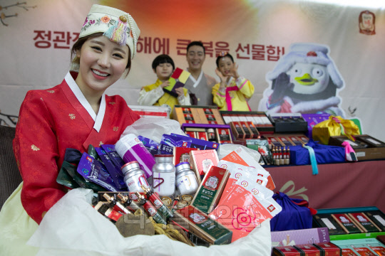 KGC인삼공사 정관장이 6일 서울 중구 한국의 집에서 다가오는 설을 앞두고 '20년 설, 20살의 마음을 선물하세요' 캠페인 행사를 진행하고 있다. 오는 29일까지 진행하는 이번 행사에서는 정관장 선물세트 브랜드 '다보록' 24종을 비롯하여 홍삼톤, 홍삼달임액, 화애락, 알파프로젝트, 굿베이스 등 인기 제품 구매시 다양한 구매 혜택을 제공한다.