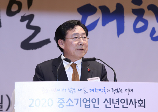 중소기업중앙회는 6일 서울 여의도 중소기업중앙회 그랜드홀에서 '2020 중소기업인 신년인사회'를 개최했다. 이날 행사에서 김기문(사진) 중기중앙회장은 인사말을 통해, 대기업과 중소기업 간 상생협력이 어느 때보다 절실한 시점이라고 강조했다.