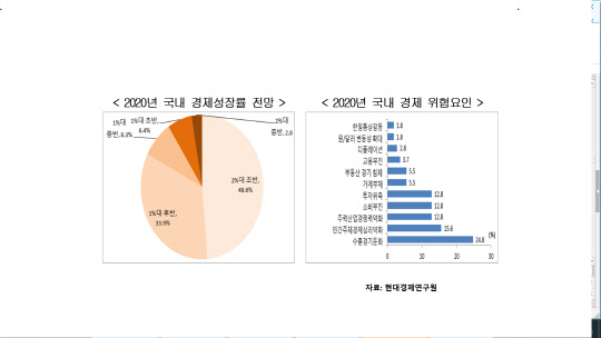 올해 세계 경제 위협 요인으로는 '미중 무역분쟁 장기화'(62.4%), 국내 경제 위협 요인으로는 '수출경기 둔화'(24.8%)가 꼽혔다.