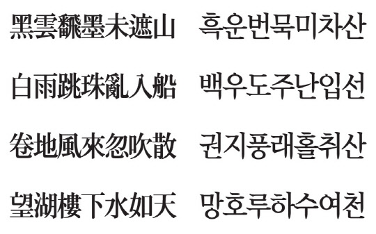 항저우(杭州)에는 유명한 시후(西湖)가 있다. 수많은 시인들이 이곳에 와 감흥에 취해 시를 썼다. 소동파(蘇東坡)도 그중 한 명이다. 이 시는 소동파가 항주자사(杭州刺使)라는 벼슬살이 할 때 썼다. 모처럼 유람왔는데 먹구름이 일고 소나기가 퍼붓기 시작했다. 그러다 언제 그랬냐는 듯 순식간에 날이 개었다. 물빛이 파란 하늘빛으로 돌아왔다. 이런 상황을 일필휘지(一筆揮之)로 써내려간 시다.