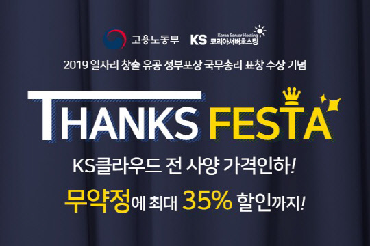 KS클라우드 관계자는 "지난 2019 일자리 창출 유공 정부포상에서 국무총리 표창을 수상한 기념으로 '땡스 페스타'라는 이벤트를 진행하게 되었다"며, "클라우드 가격에 부담을 가지고 있는 고객이 많은 것을 고려한 점과 클라우드 30일 무료체험 이벤트가 많은 호응을 받고 있어 이에 이어 전 사양 가격을 인하하는 특별 이벤트를 진행하게 되었다"라고 밝혔다.