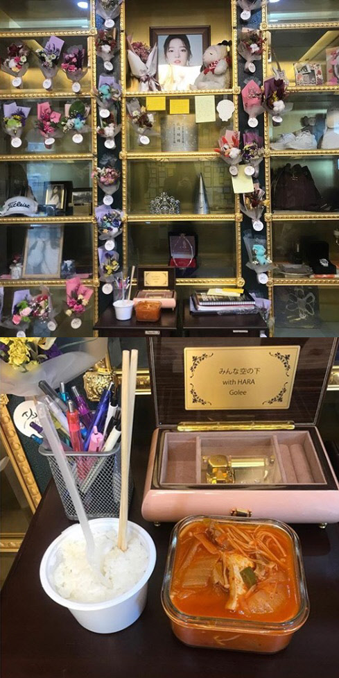 사진에는 구하라의 납골당과 함께 그 앞에 김치찌개와 밥을 차려논 모습이 담겼다.