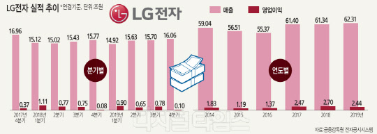 LG전자는 지난해 연결기준 매출액 62조3062억원, 영업이익 2조4361억원을 각각 기록했다고 30일 공시했다.