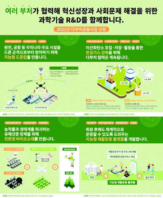 과학기술정보통신부는 7일 서울 엘타워에서 '제6회 다부처협력 특별위원회'를 열어 '다부처 공동사업'과 '민·군 부처연계 협력사업'을 선정했다고 밝혔다.