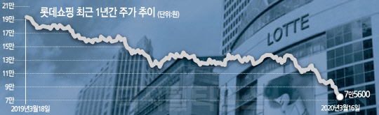 코로나19 사태로 유통 업종에 속한 상장사 대부분 하락했지만, 롯데쇼핑의 타격은 더욱 컸다. 사드(고고도미사일방어체계·THAAD) 여파가 가시기도 전에 일본 불매 운동에 휘말렸고, 연이어 코로나19 사태까지 터지자 롯데쇼핑 주가는 속수무책으로 떨어졌다.