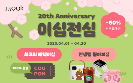 1300k 관계자는 "20년간 한결같이 자사의 다양한 상품을 사랑해주신 고객들에게 보답하고자 이번 이벤트를 마련하게 됐다"며 "다양한 이벤트를 통해 100만여종 상품을 최대 60% 할인가로 구매하시고, 푸짐한 경품도 받아 가실 수 있길 바란다. 더불어 매월 13일에 진행되는 1300k 13데이에는 갤럭시Z플립 증정 이벤트와 인기 아이템을 130원에 구매할 수 있는 이벤트가 진행될 예정이니 많은 참여 부탁드린다"고 전했다.
